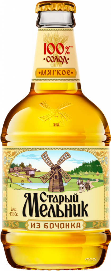 Старый Мельник Светлое - традиционное светлое пиво янтарного цвета с чистым, освежающим вкусом и ароматом традиционного лагера, обладает мягкой горечью и приятным хмелевым ароматом.